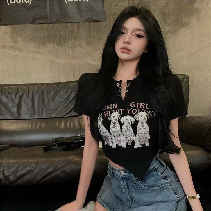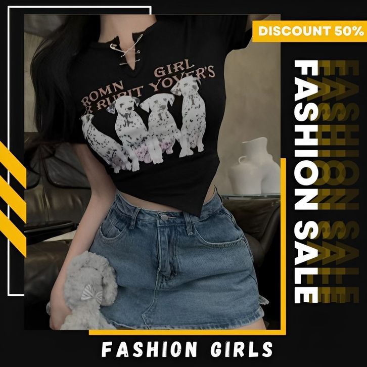 Atasan Wanita Pin Front Printed Irregular Crop Top 2173 (S-L) Premium Best Seller Termurah Fashion Girls