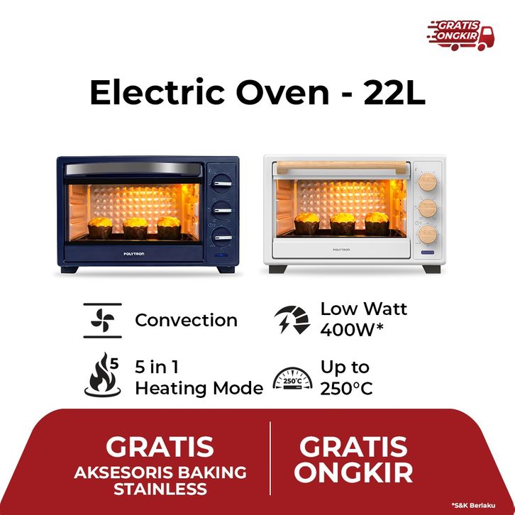 POLYTRON Kitchenmate Oven Listrik Low Watt 22 Liter - PEO 22B1B / PEO 22B2B / PEO 22B2W