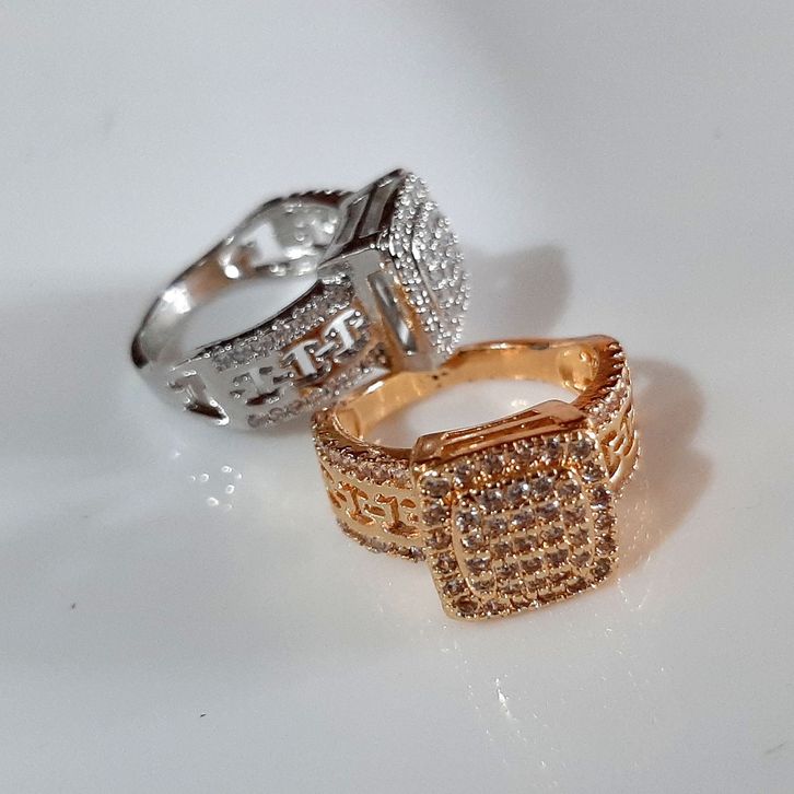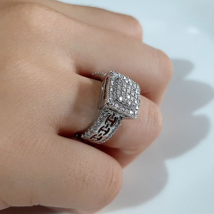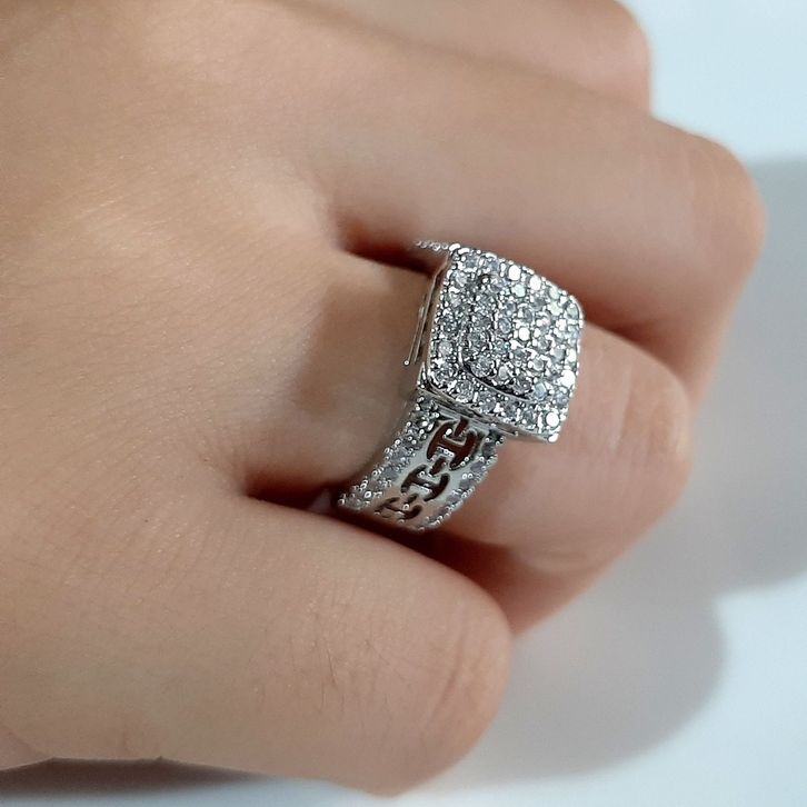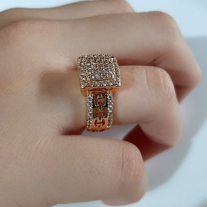 cincin wanita kotak mewah CNG137 permata warna mas silver