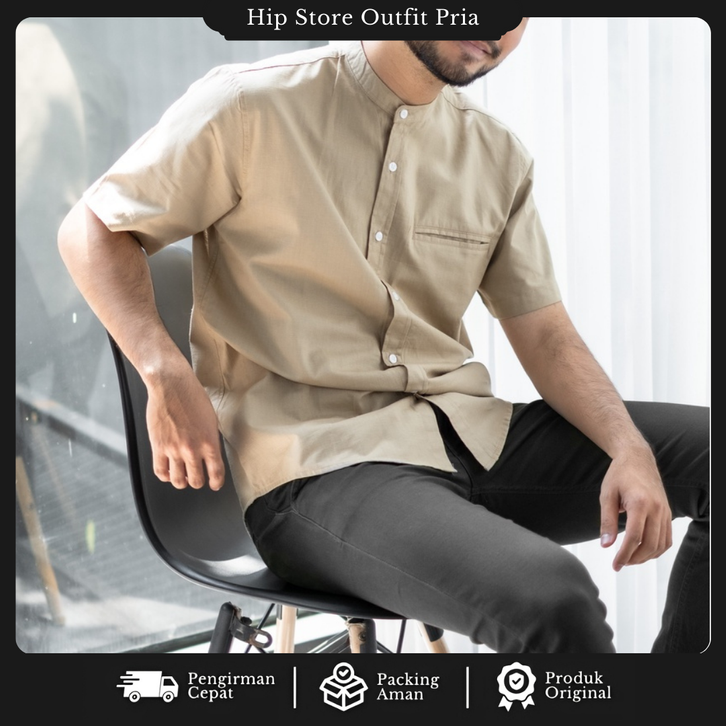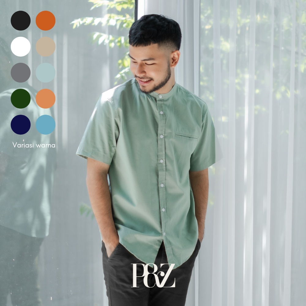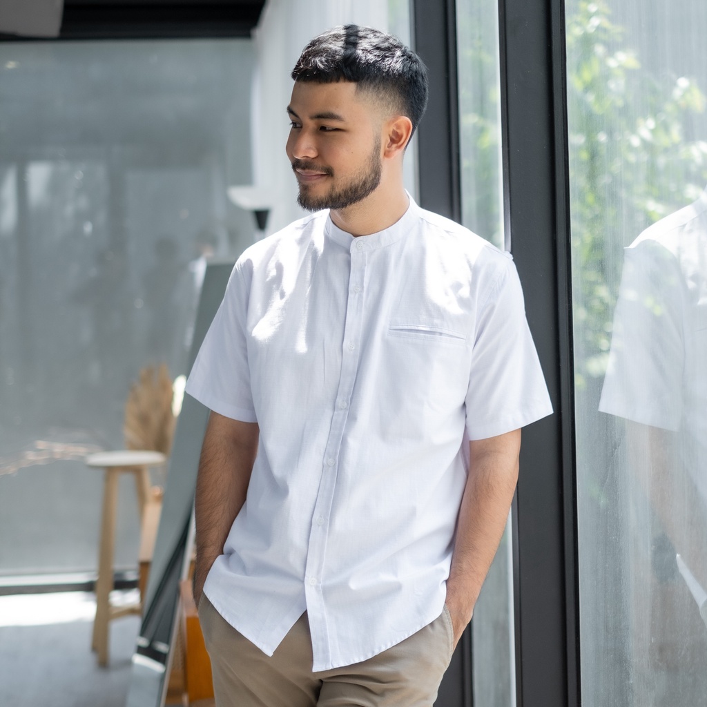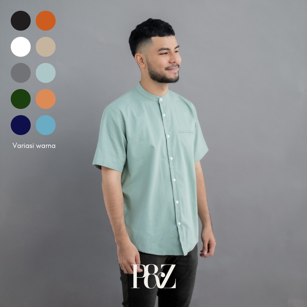 KEMEJA SHANGHAI PRIA LENGAN PENDEK POLOS KATUN KOKO KASUAL MODEL KEKINIAN