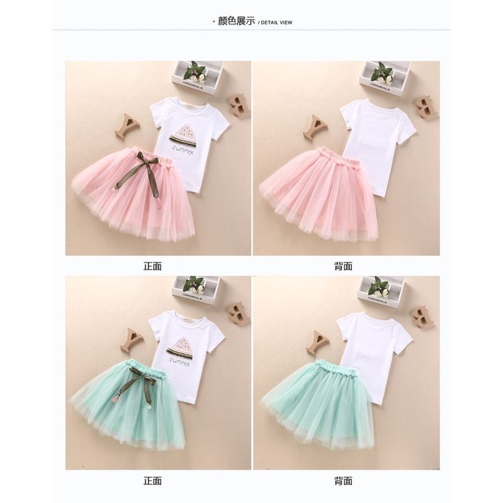 SETELAN ANAK PEREMPUAN ROK TUTU WATERMELON BAJU BAHAN KATUN LENGAN PENDEK ONESET LUCU