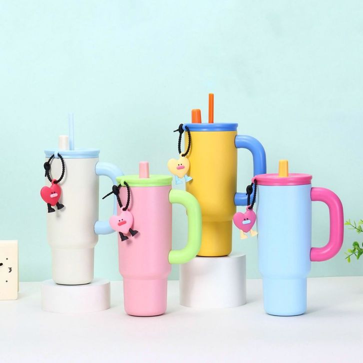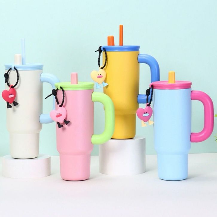 Tumbler Stainless Handle Fun Love 710ml Free Sedotan Ada Pegangan