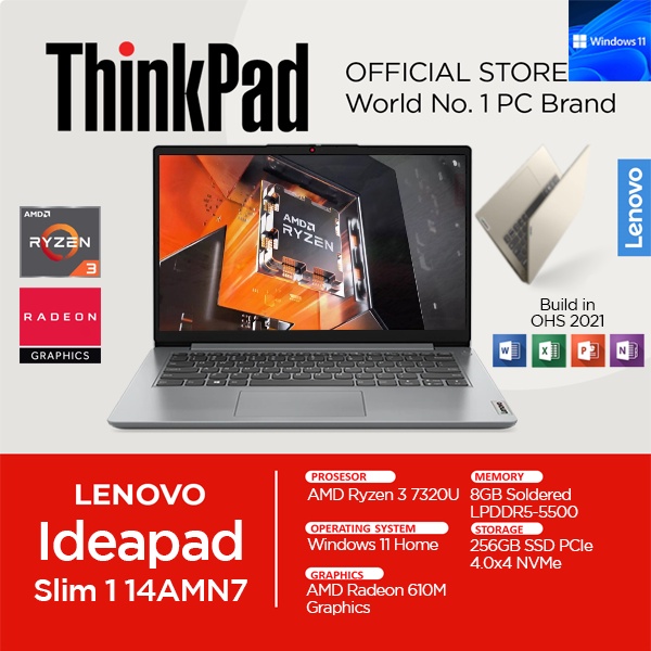 LENOVO IDEAPAD SLIM 1 14 RYZEN 3 7320U 8GB 512SSD RADEON 610M WIN11+OHS 14.0FHD GREY - 3HID
