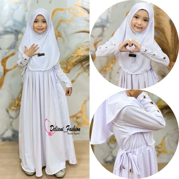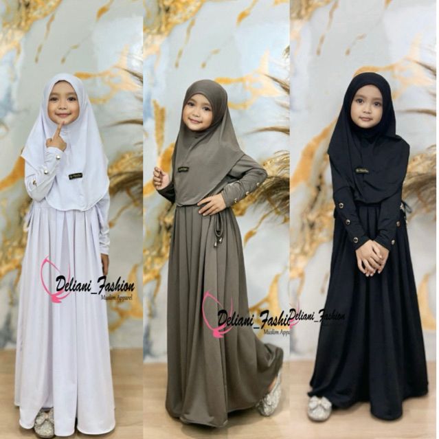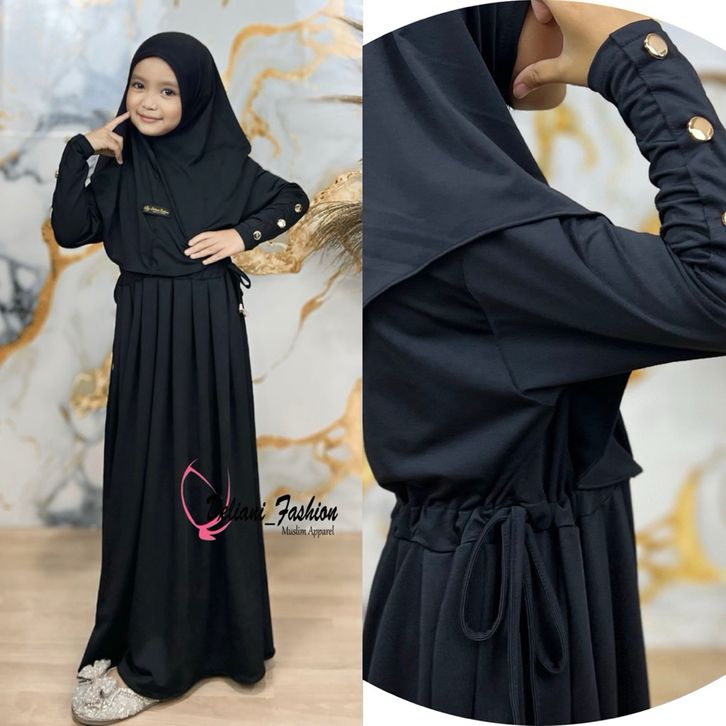 Gamis Anak Perempuan Set Hijab Abaya Serut Pinggang Inara Dress Muslim Lebaran Terbaru