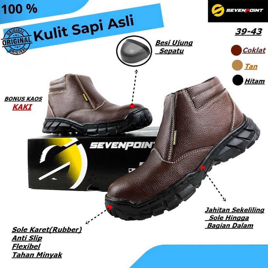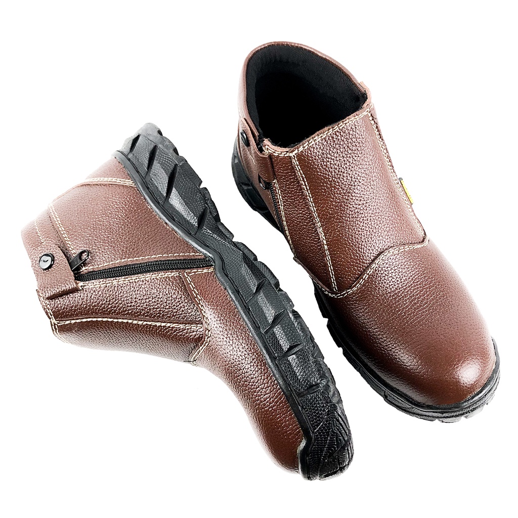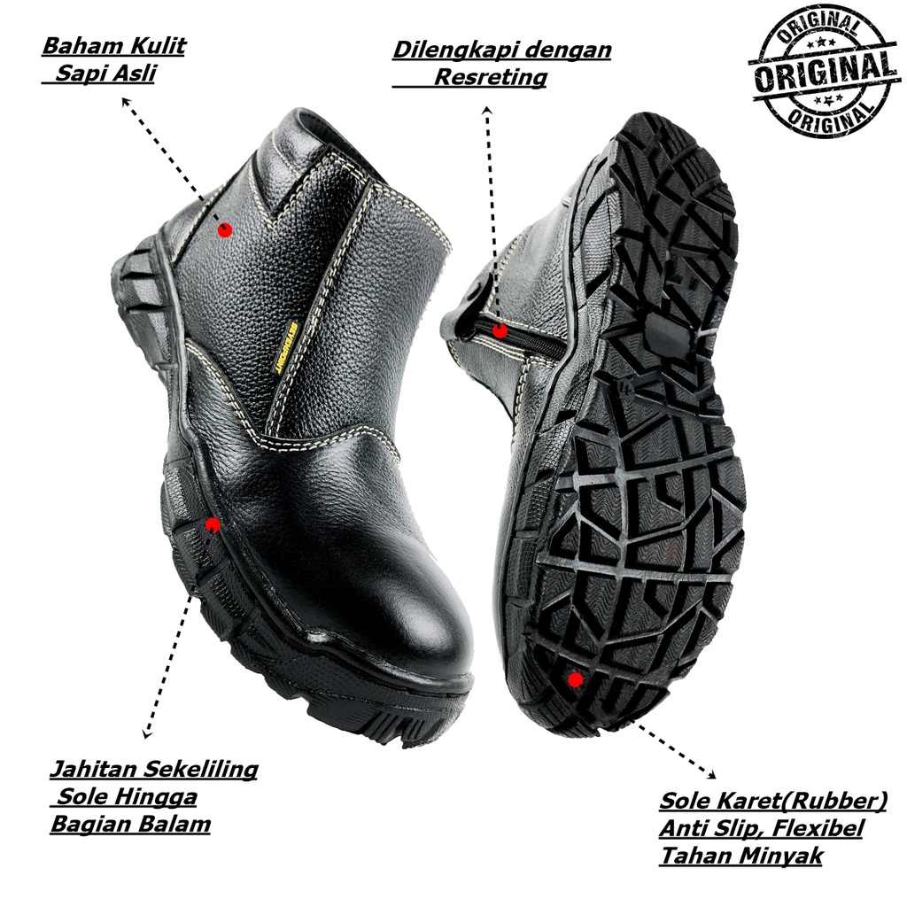 Sepatu Safety Pria Kulit Sapi Asli Ujung Besi Baja Proyek Lapangan Industry Tanpa Tali Slop Kitche Btr Sepatu Kerja Pria