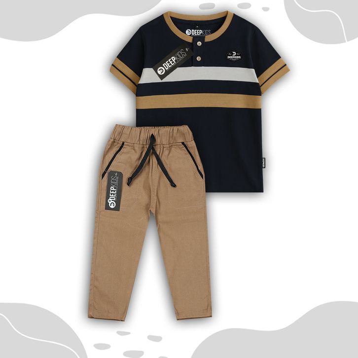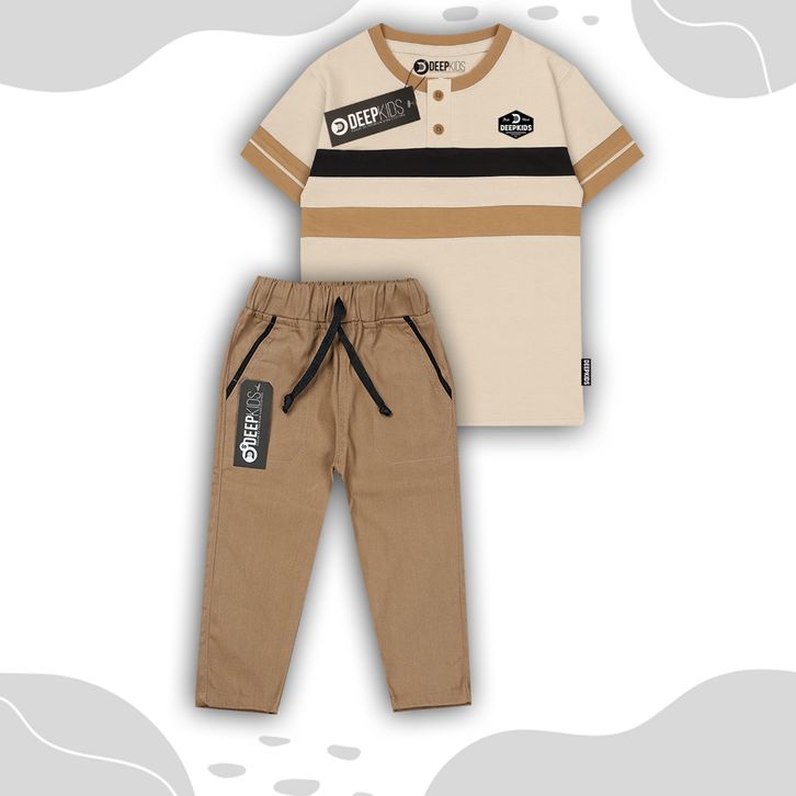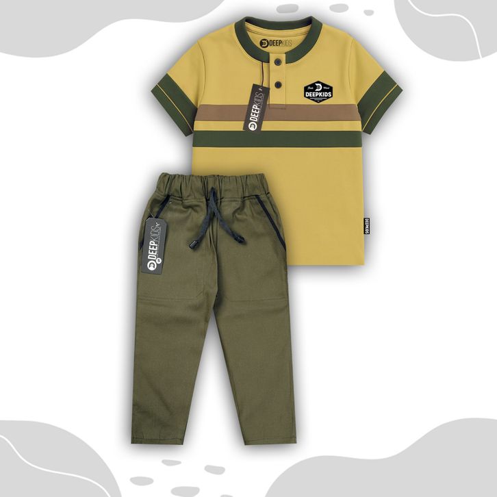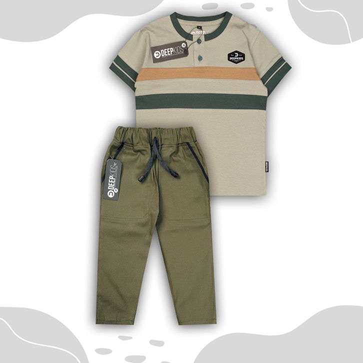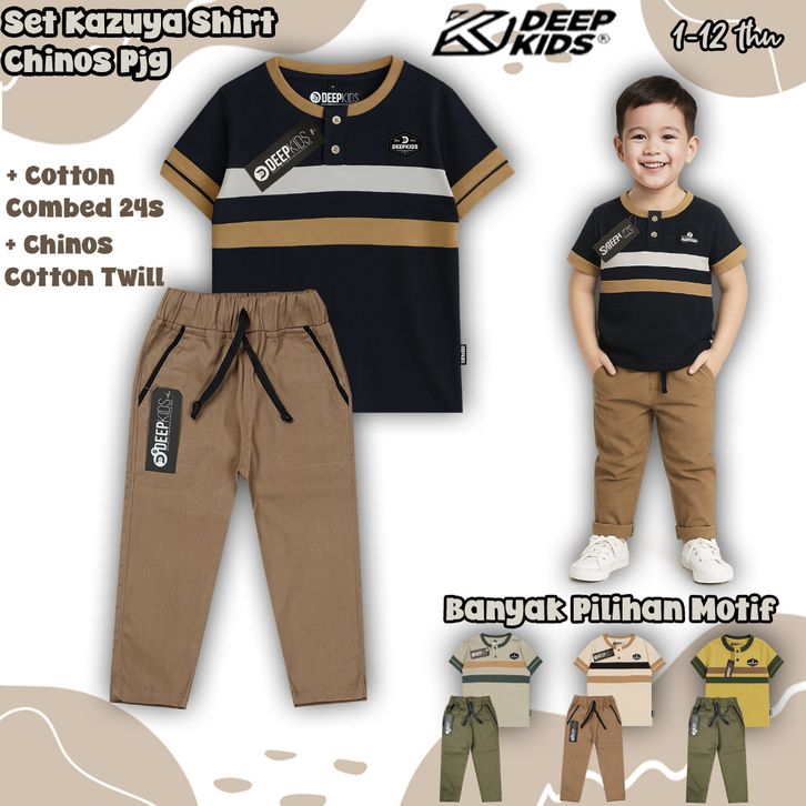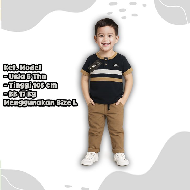 Baju Setelan Anak Laki Laki Kaos Kerah Kancing Celana Chinos Panjang Bahan Cotton Combed 24s & Twill