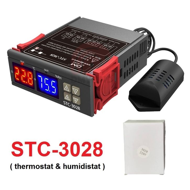 Thermostat Hygrostat Digital STC-3028 STC-1000 atur Suhu Kelembaban