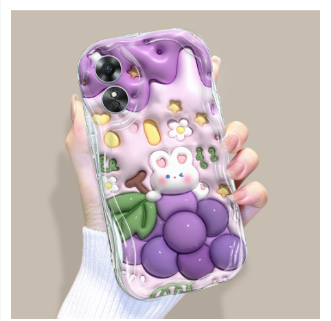 OPPOO A17 A17K Untuk Hp Casing Softcase Lovely Fruit Cassing Handphone Cream Texture Wavy Edge Sofcase Soft Kesing SiliO
