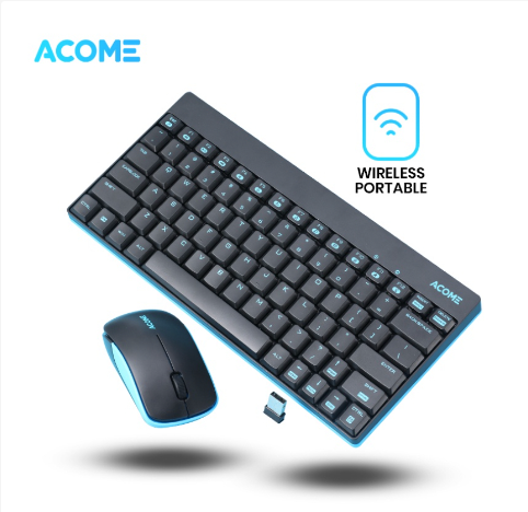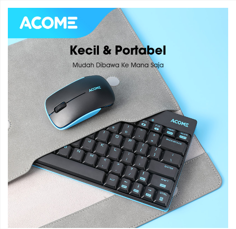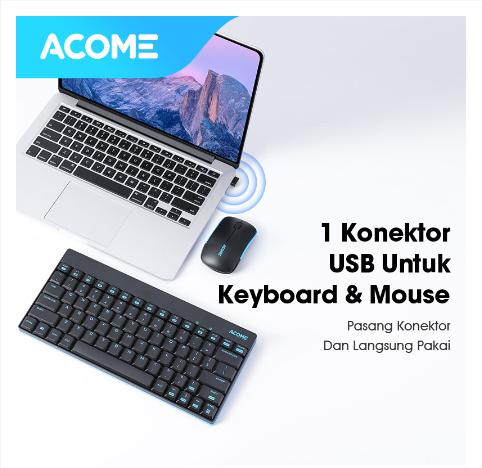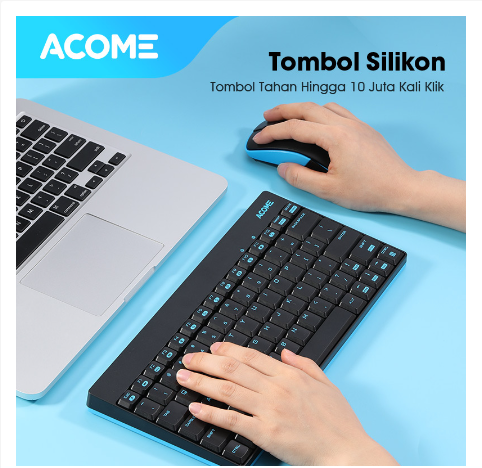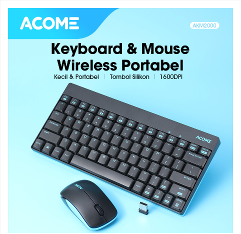 Acome Keyboard & Mouse Wireless Portable 1600 DPI Tombol Silikon Garansi Resmi 1 Tahun AKM2000