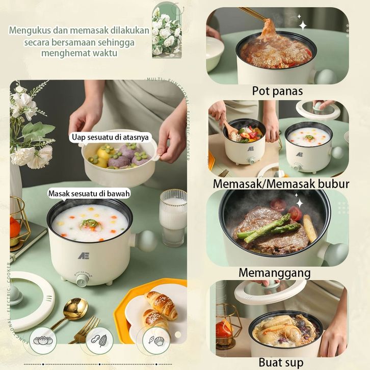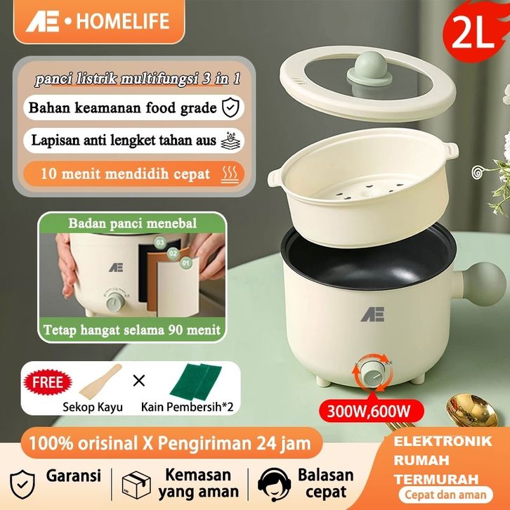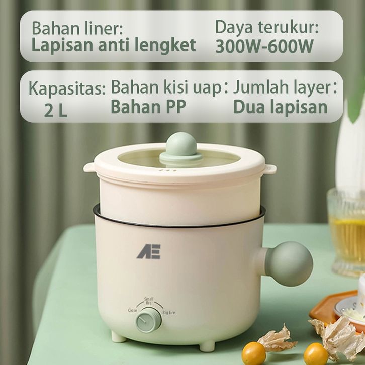 PANCI LISTRIK SERBAGUNA AE 2L LOW WATT MINI MULTIFUNGSI 3IN1 KUKUSAN LISTRIK LAPISAN KERAMIK PENYESUAIAN KECEPATAN GAND