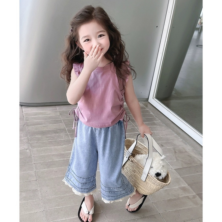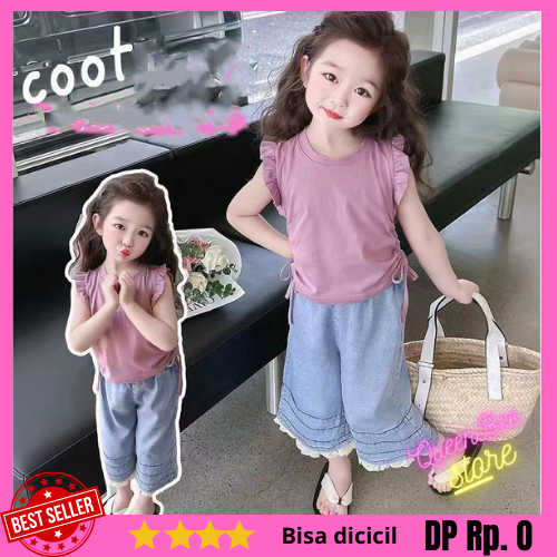 Setelan Anak Perempuan Import Korean Style 3-8 Tahun Setelan Baju Anak Celana Panjang Soft Jeans Anak Perempuan Terbaru