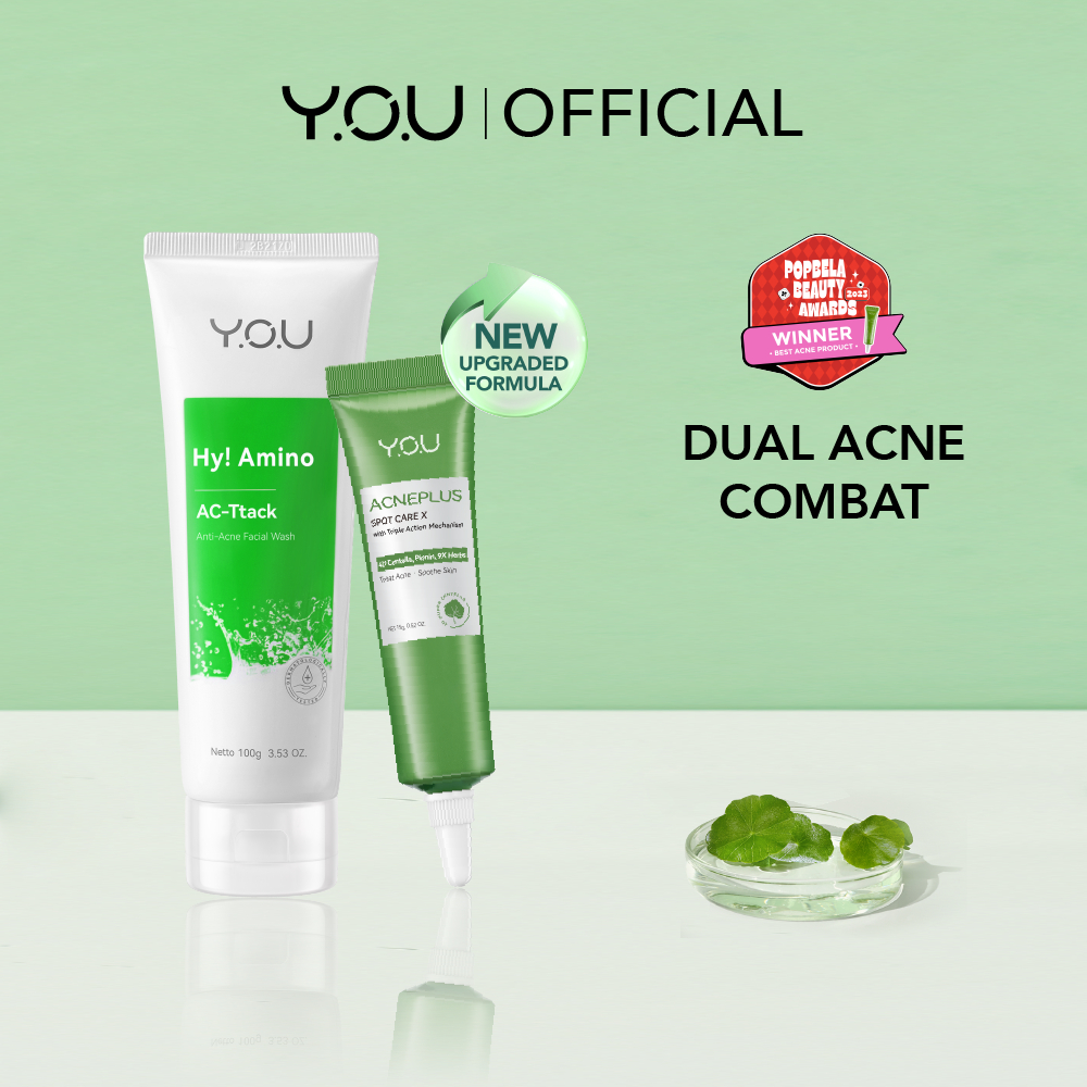YOU ACNE TREATMENT BUNDLE | ACNEPLUS SPOT CARE, ANTI ACNE FACIAL WASH, RADIANCE UP SERUM, SERUM ACNE, MOISTURIZER