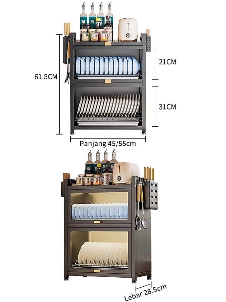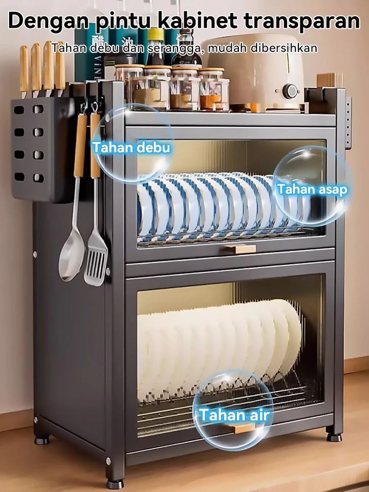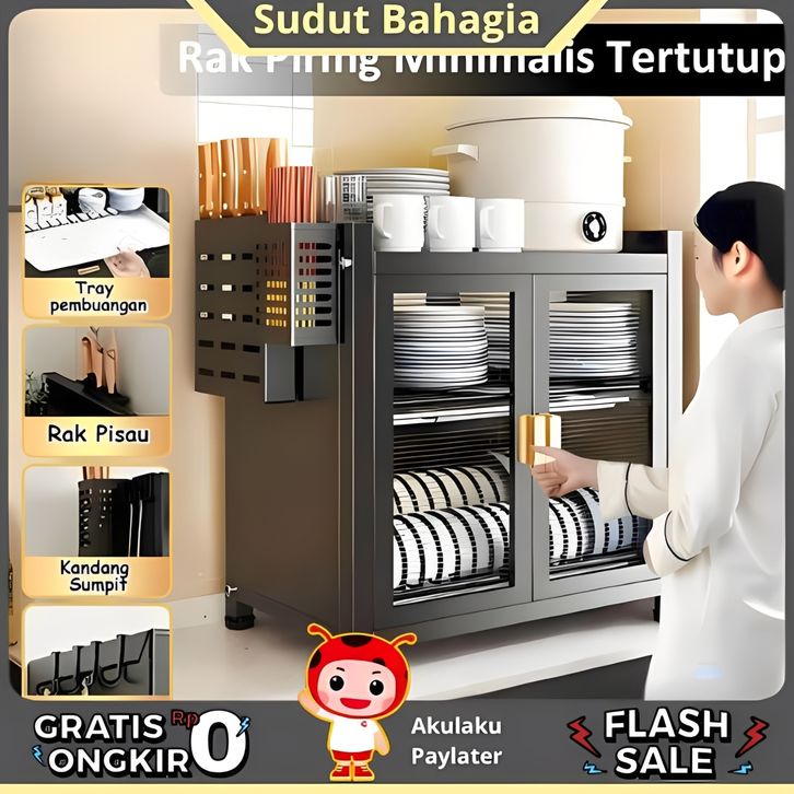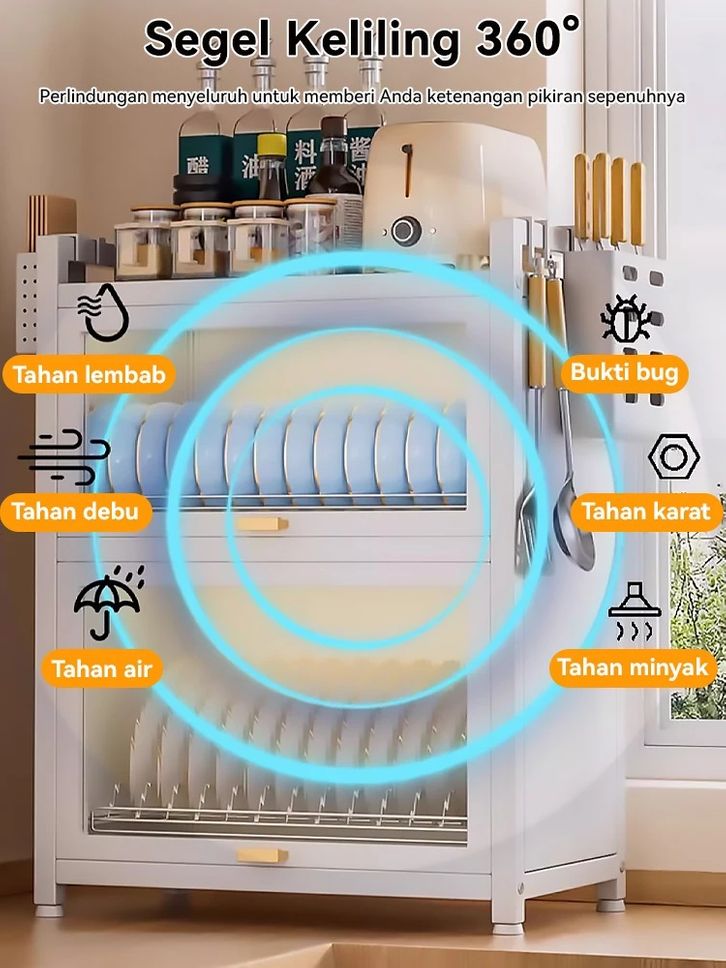Rak Piring Tertutup Stainless Minimalis Modern Quality Premium Pengering Tempat Tirisan Cucian Mangkuk Gelas Serbaguna