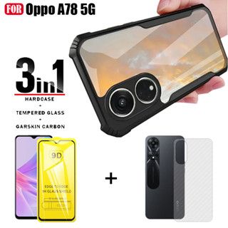 Paket 3 in 1 Opp o A78 5G Hardcase Transparant + Anti Gores Kaca + Garskin
