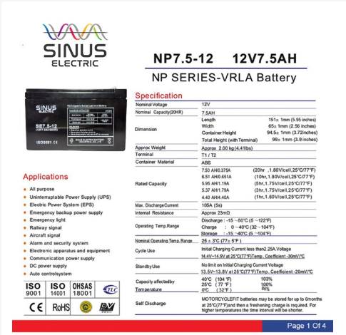 Aki sprayer listrik 12V 7.5AH Aki VRLA SINUS 7.5-12
