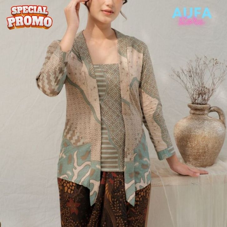 Kebaya Kutubaru Modern Motif Batik Green Sage kebaya batik modern wanita kebaya wisuda kebaya bali batik modern wanita