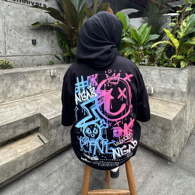 NGAB KAOS DISTRO OVERSIZE STREET VANDAL HITAM UNISEX PRIA WANITA