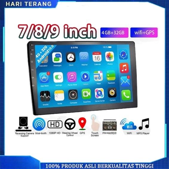 Universal Head Unit Android 7/9/10 Inch 12 Radio Stereo Mobil 4+32GB ROM Bluetooth WiFi GPS Navigasi Head Unit