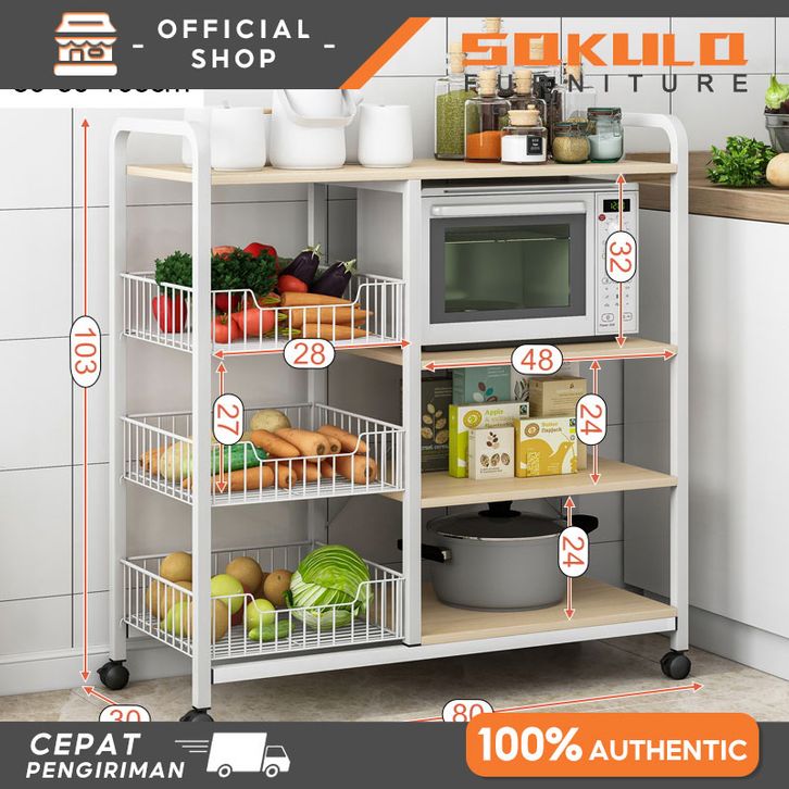 Sakula Rak Dapur Susun Minimalis / Rak Oven Microwave Besar / Bumbu Dapur Kayu Serbaguna Rak Serbaguna Minimalis