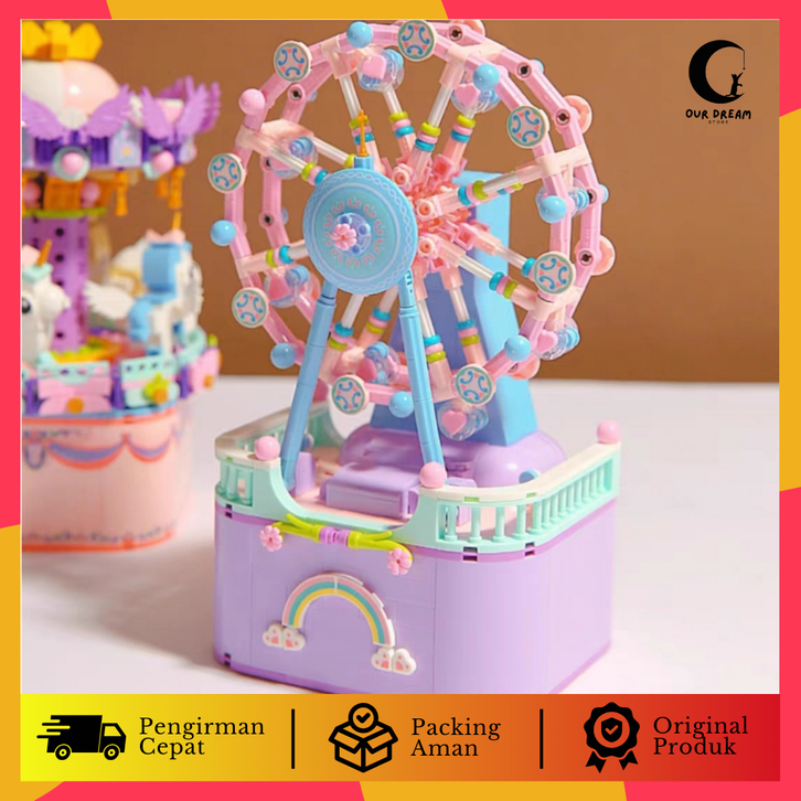 LEGO MUSIC BOX FREE KERTAS KADO HADIAH ULANG TAHUN KEKINIAN MAINAN BLOK SUSUN FERRIS WHEEL