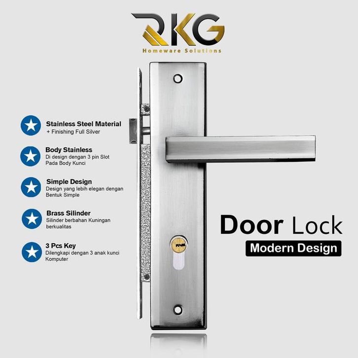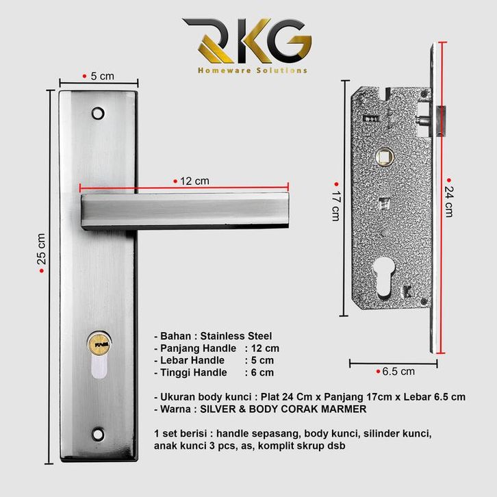 KUNCI PINTU RUMAH BESAR GAGANG KOTAK SILINDER KUMPLIT SET 25 CM L GAGANG HANDLE PINTU RUMAH STAINLESS TERBARU TERLARIS