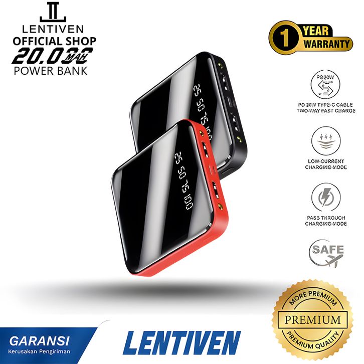 LENTIVEN PowerBank 20000mAh Mini Digital Display Fast Charging