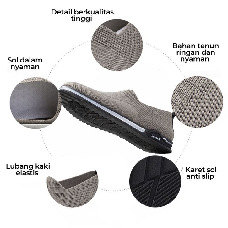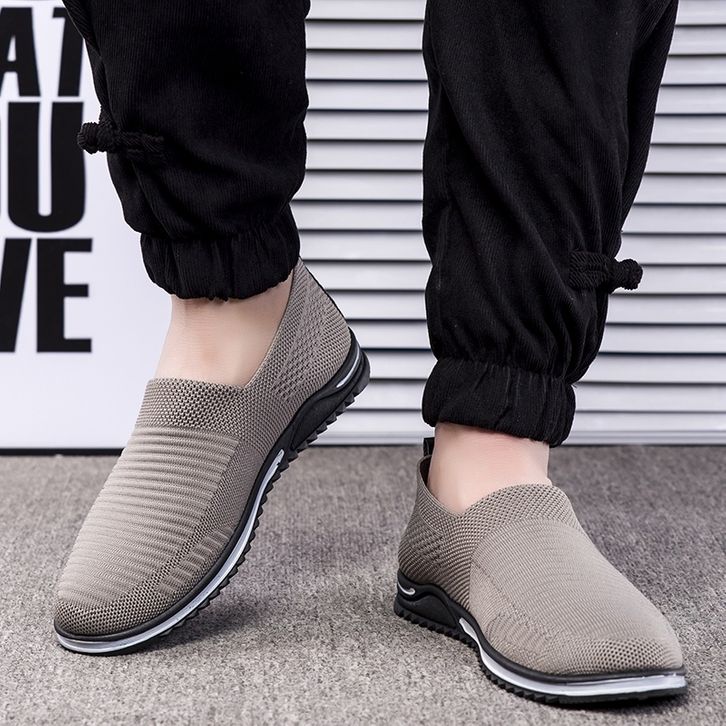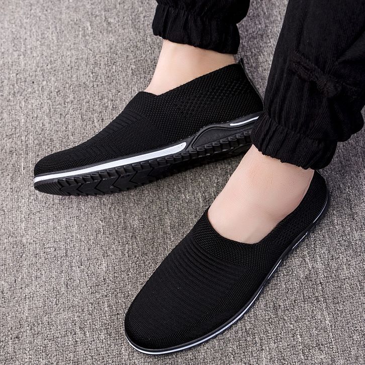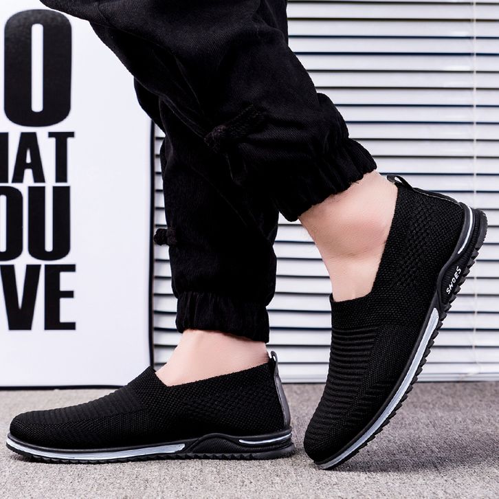 Sepatu Slip On Cowok Kuliah Kerja Kasual Sneakers Desain Trendy Kekinian MR134 Shoes Cowok Kain Flyknit Nyaman Ringan