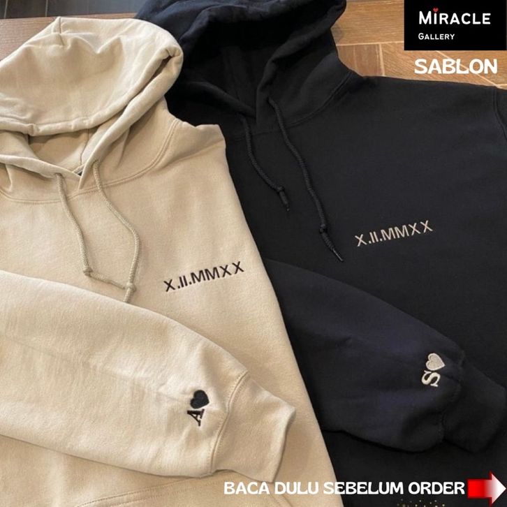 Sweater Hoodie Couple / Jaket Pasangan CUSTOM ANGKA ROMAWI/HURUF DILENGAN Bahan Fleece Premium
