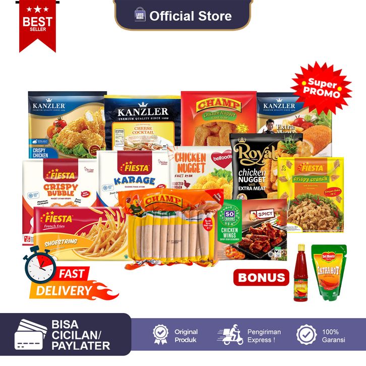 FIESTA CHICKEN NUGGET 500GR, FIESTA KENTANG SHOESTRING 1KG, FIESTA SPICY CHICKEN 500GR, FIESTA SPICY WINGS 500GR, FIESTA POK-POK 500GR, FIESTA GYOZA 180GR, FIESTA EBI FRY 160GR, FIESTA CRISPY CRUNCH / KULIT 300GR, FIESTA SPICY CHICKEN KARAGE 500GR, FIESTA CHICKEN KARAGE 500GR, FIESTA DELISTRIPES 500GR, FIESTA DINO CHICKEN NUGGET 500GR, FIESTA CHEESY LOVER 500GR, FIESTA VOLCANO CHEESE 500GR, FIESTA CHICKEN STICK NUGGET 500GR, FIESTA DORY STICK 200GR, KANZLER CHICKEN NUGGET 450GR, KANZLER CRISPY CHICKEN NUGGET 450GR, KANZLER CHICKEN CORDON BLEU 300GR, KANZLER BEEF COCKTAIL 1KG, KANZLER SMOKED BEEF 250GR, KANZLER FRANKFURTER COCKTAIL 500GR, KANZLER CHEESE COCKTAIL 500GR, KANZLER GARLIC FRANKFURTER 300GR, KANZLER CHEESE FRANKFURTER 360GR, KANZLER BLACKPEPPER FRANKFURTER 300GR, KANZLER GERMAN BRATWURST 360GR, SO GOOD CHICKEN NUGGET 400GR, SO GOOD CHICKEN STICK NUGGET 400GR, SO GOOD PREMIUM CHICKEN STICK NUGGET 400GR, SO GOOD PREMIUM CHICKEN NUGGET 400GR, SO GOOD FISH NUGGET 300GR, SO GOOD ALPHABET CHICKEN NUGGET 400GR, SO GOOD CHICKEN KATSU 400GR, SO GOOD SPICY CHICKEN STRIPS 250GR, SO GOOD CRISPY BBQ 400GR, SO GOOD CHICKEN WINGS 400GR, CHAMP SOSIS BAKAR 500GR, CHAMP SOSIS AYAM 1KG, CHAMP SOSIS SAPI 375GR, CHAMP CHICKEN NUGGET 500GR, CHAMP CHICKEN KARAGE 500GR, CHAMP SPICY CHICKEN KARAGE 500GR, CHAMP CHICKEN STICK NUGGET 500GR, BELFOOD CHICKEN STICK NUGGET 500GR, BELFOOD CHICKEN NUGGET 500GR, BELFOOD ROYAL CHICKEN NUGGET 500GR, BELFOOD ROYAL DRUMMIES 500GR, BELFOOD ROYAL CORDON BLEU 500GR, BELFOOD NUGGET CERIA 170GR, BELFOOD ROYAL CRISPY KARAGE 500GR, BELFOOD ROYAL CHEEZY BITES 500GR, BELFOOD GANGNAM CHICKEN 200GR, BELFOOD ITAEWON CHICKEN 200GR, BELFOOD SOSIS SMOKED CHICKEN 3600GR, BELFOOD KENTANG FRENCH FRIES 500GR
