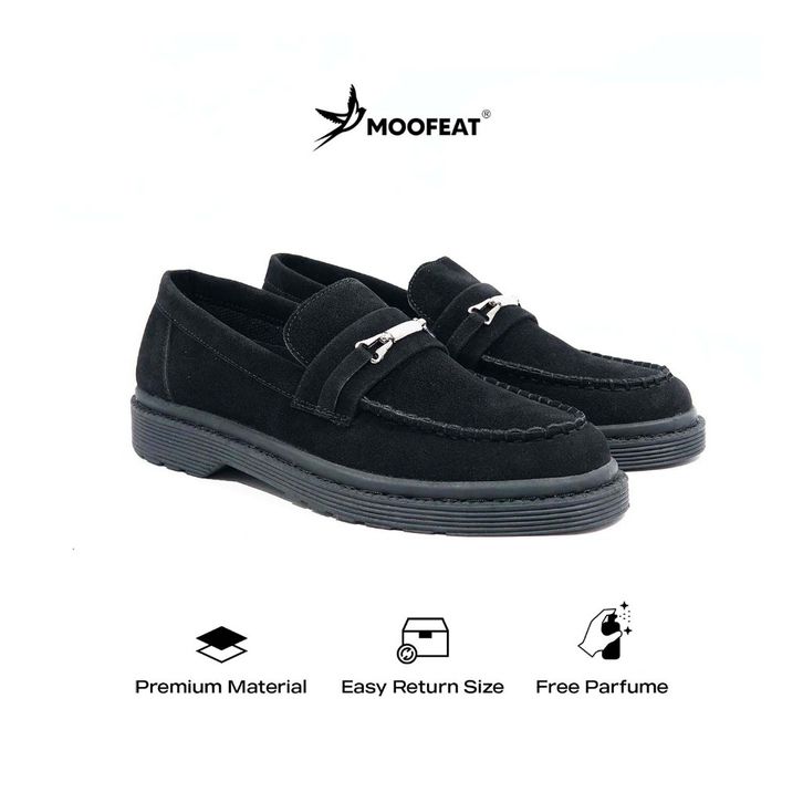 Sepatu Penny Loafers Suede Kulit Casual Pria Wanita Black