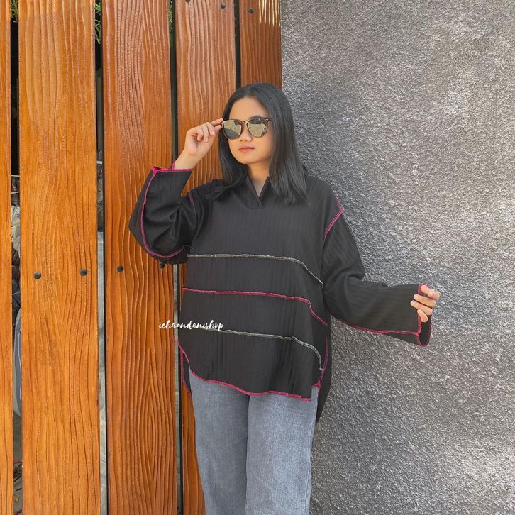 NAJU WANITA KEKINIAN TERBARU ICH - SOOYA TOP COLORBLOCK JUMBO ATASAN KNIT HORNET