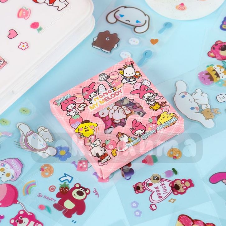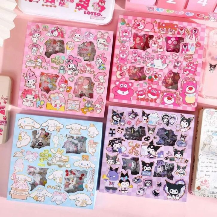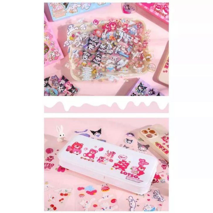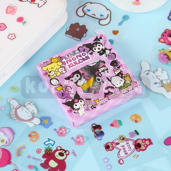 SANRIO Sticker Box Character Cartoon Stiker 2D Box isi 100 Pcs / Lembar Aesthetic Korea SENMU Ready Stock