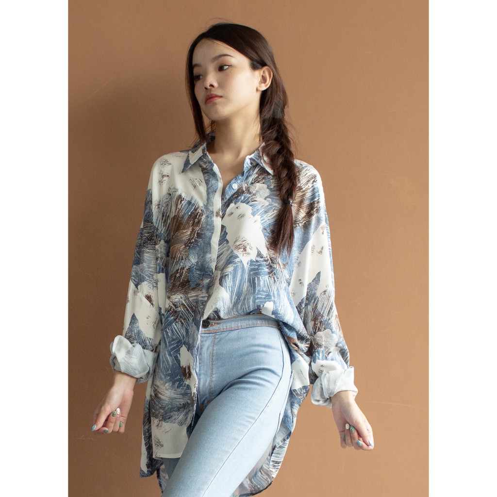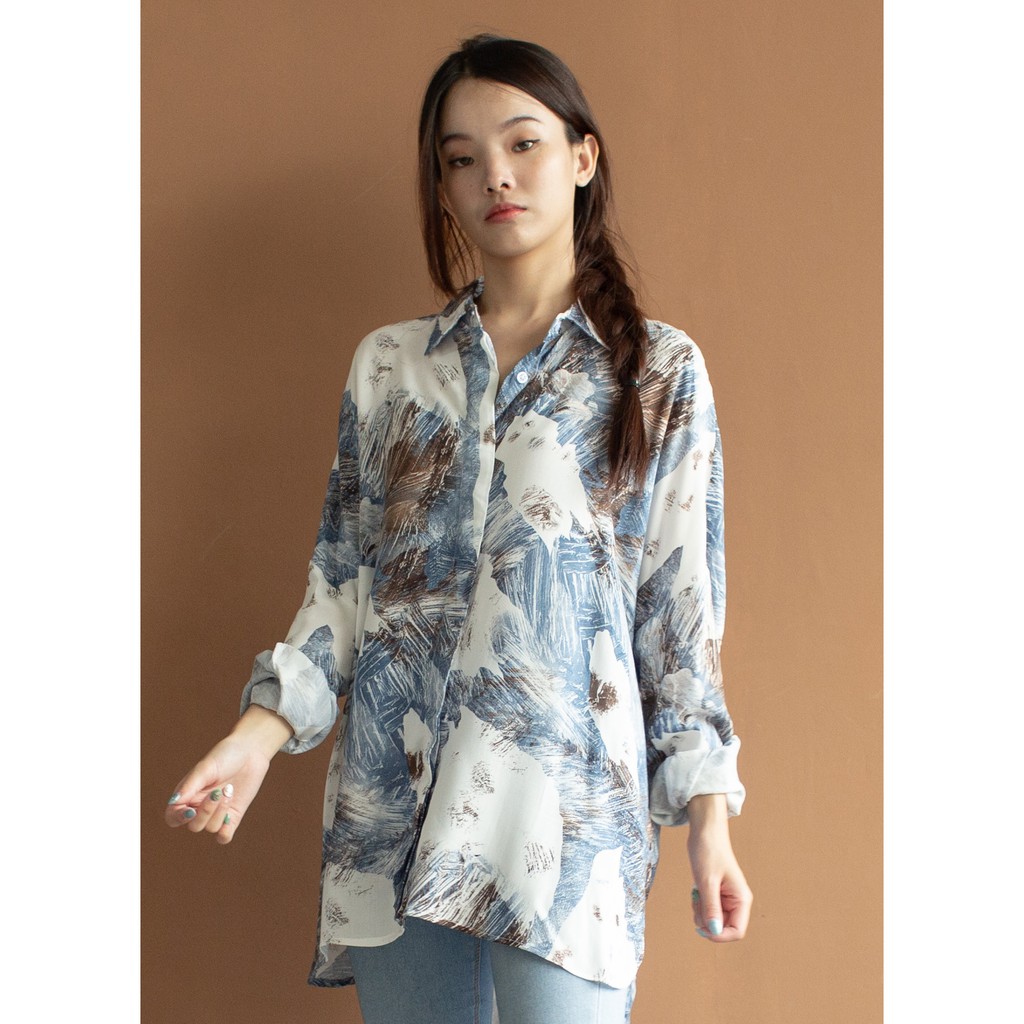IXORA NIDI OVERSIZED SHIRT - KEMEJA WANITA OVERSIZED BLOUSE BERKANCING