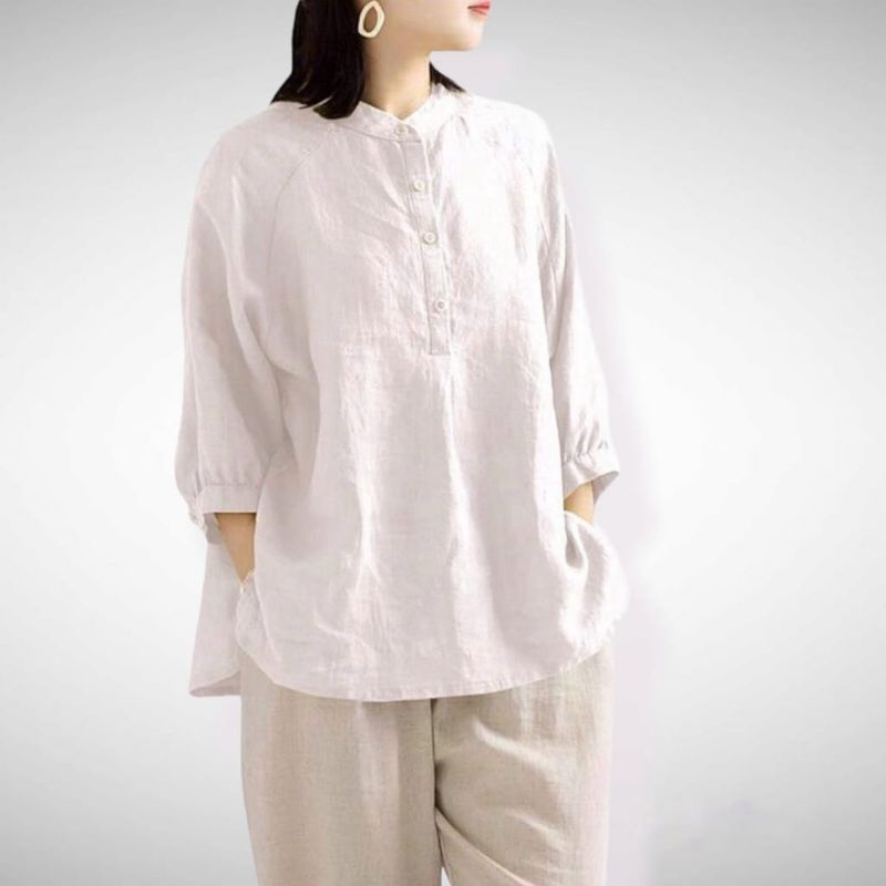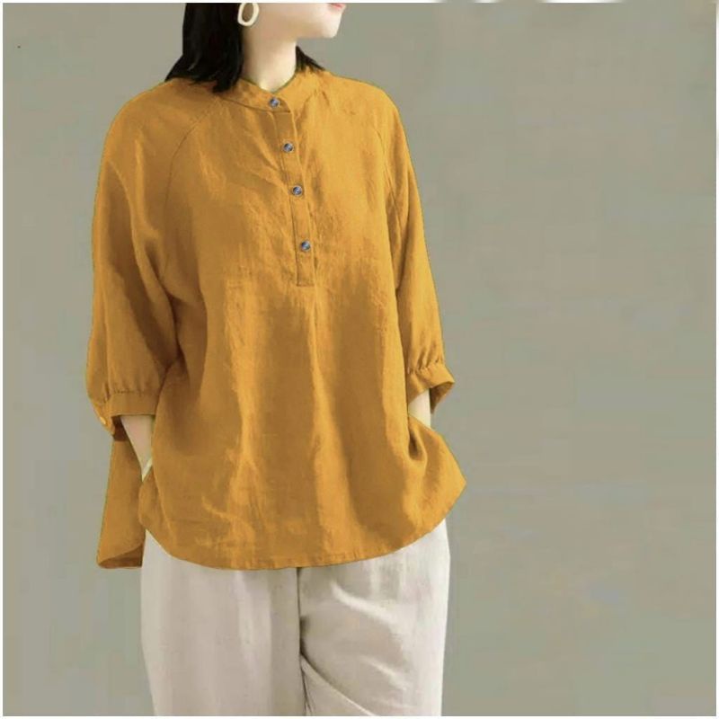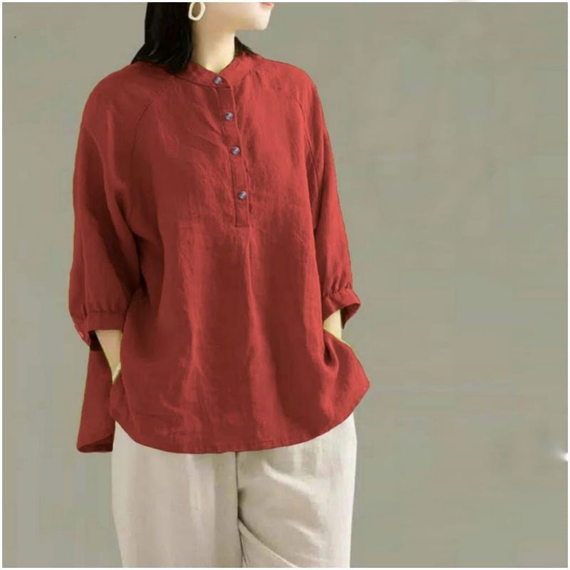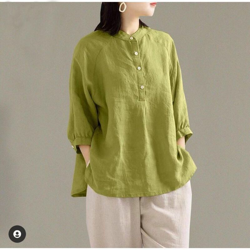 KEMEJA LINEN OVERSIZE KERAH SANGHAI KEMEJA POLOS WANITA LINEN