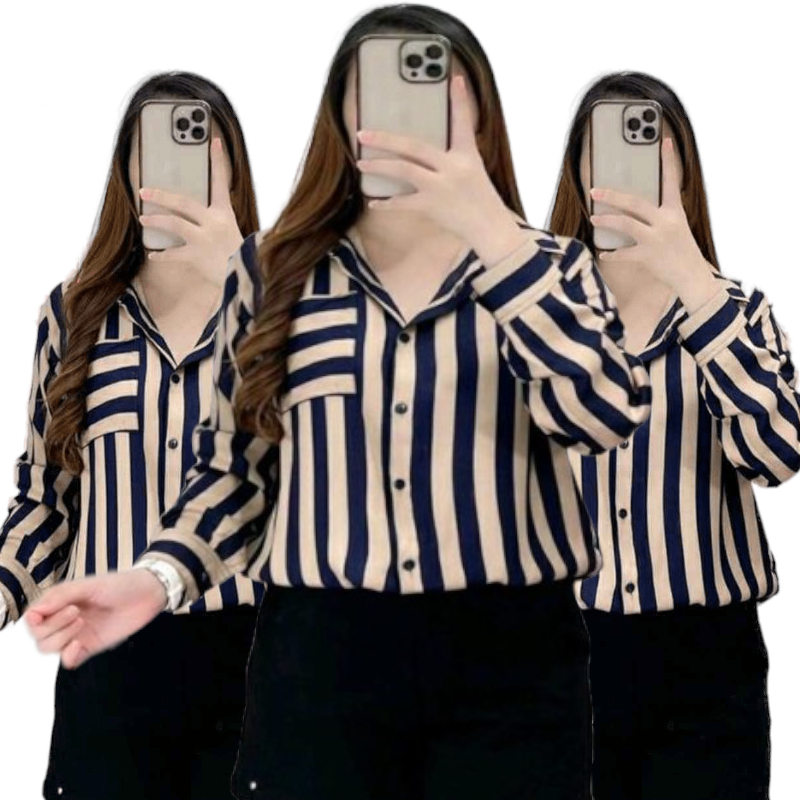 KEMEJA SALUR WANITA BAHAN RAYON LD 125 WANITA LENGAN PANJANG TERBARU 2023ATASAN STRIP SALUR KEKINIAN MODEL SELEGRAM