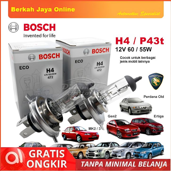 BEST PROMO 2PCS LAMPU DEPAN BOHLAM MOBIL ORI BOSCH HALOGEN H4 12V 60 - 55W Avanza Xenia Innova Agya Ayla Calya