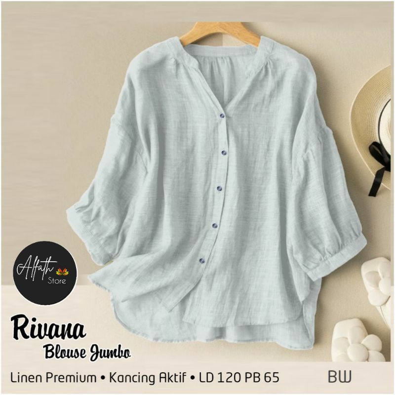 RIVANA BLOUSE JUMBO | KEMEJA POLOS WANITA KERAH SHANGHAI BAHAN LINEN LD 120 | BAJU ATASAN WANITA KOREAN STYLE