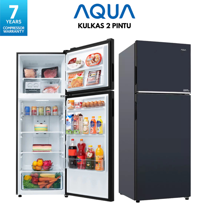 KULKAS 2 PINTU AQUA DUA KAPASITAS 333 225 205 LITER LEMARI PENDINGIN TANPA BUNGA ES JUMBO BESAR INVERTER MURAH TERBARU