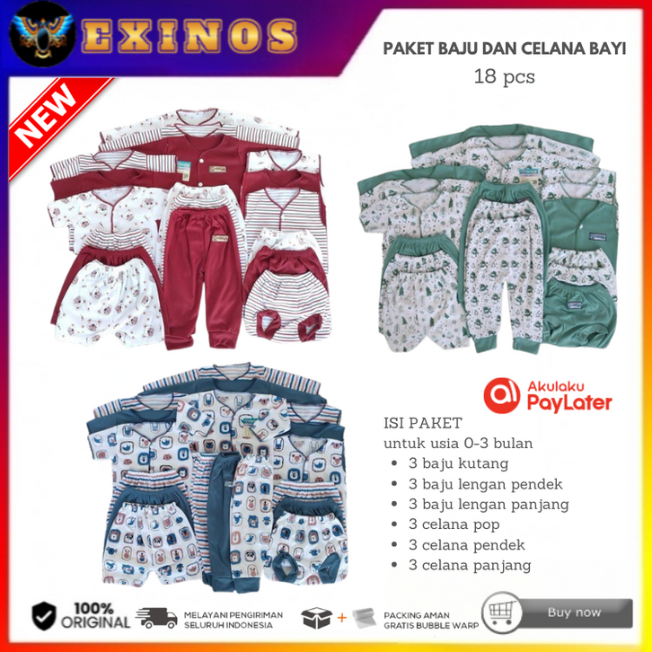 Paket Baju Bayi dan Celana Bayi 18 pcs - Paket Baju Newborn usia 0-3 Bulan - Baju Setelan Bayi