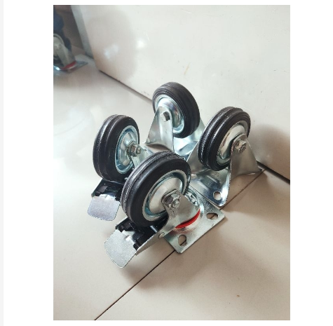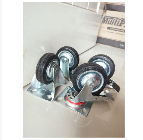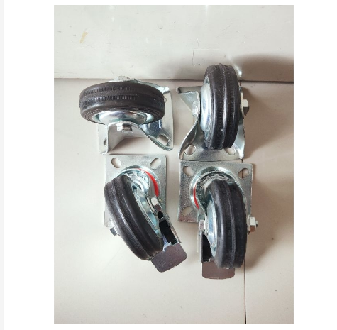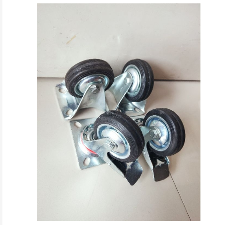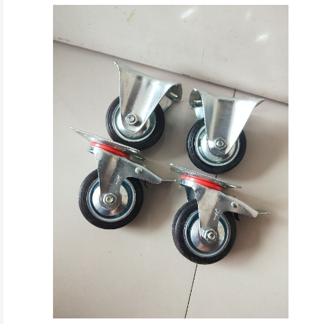 Paket roda gerobak 3" karet hitam 2 Rem 2 Mati Roda troli set 4pcs 3in trolley wheel Roda grobak