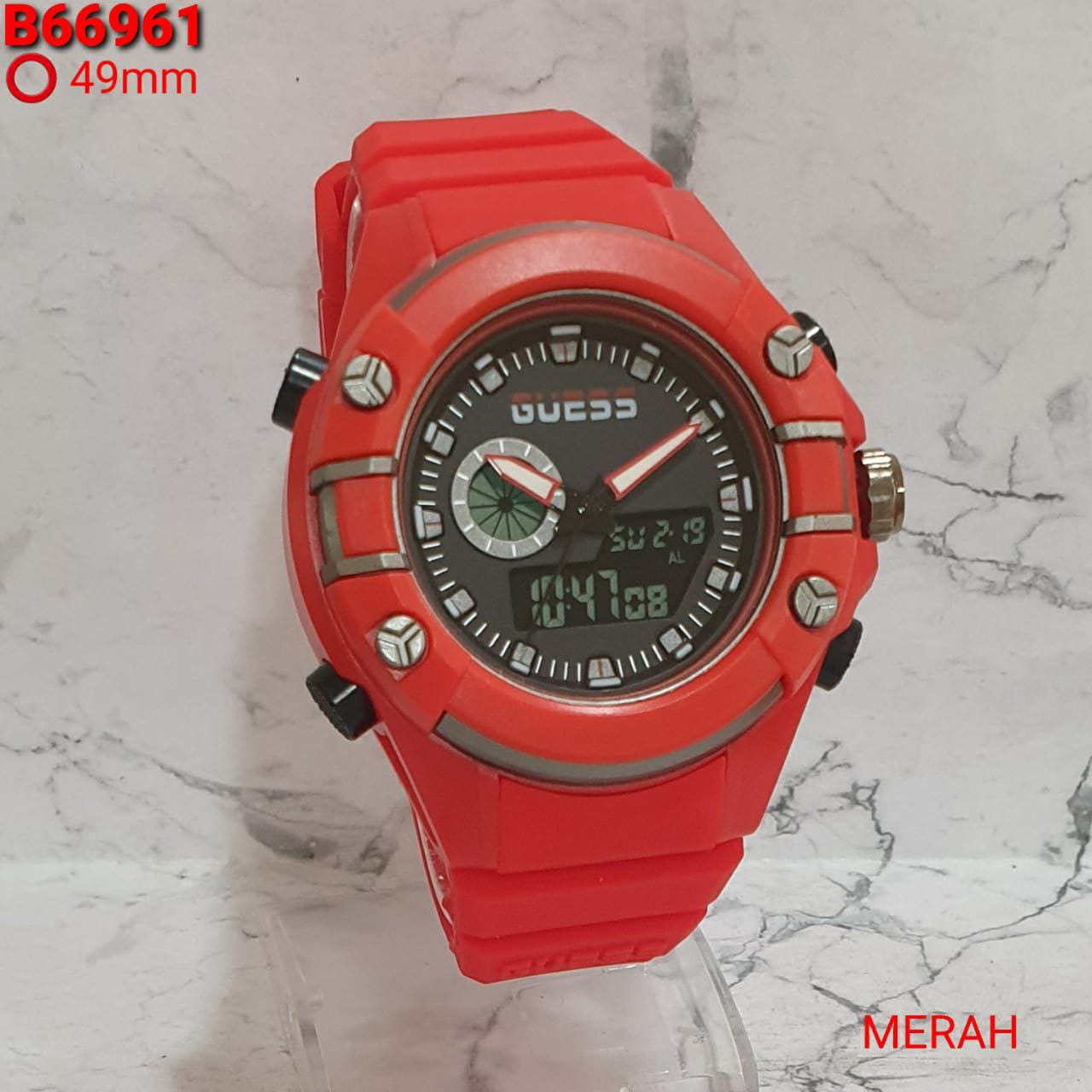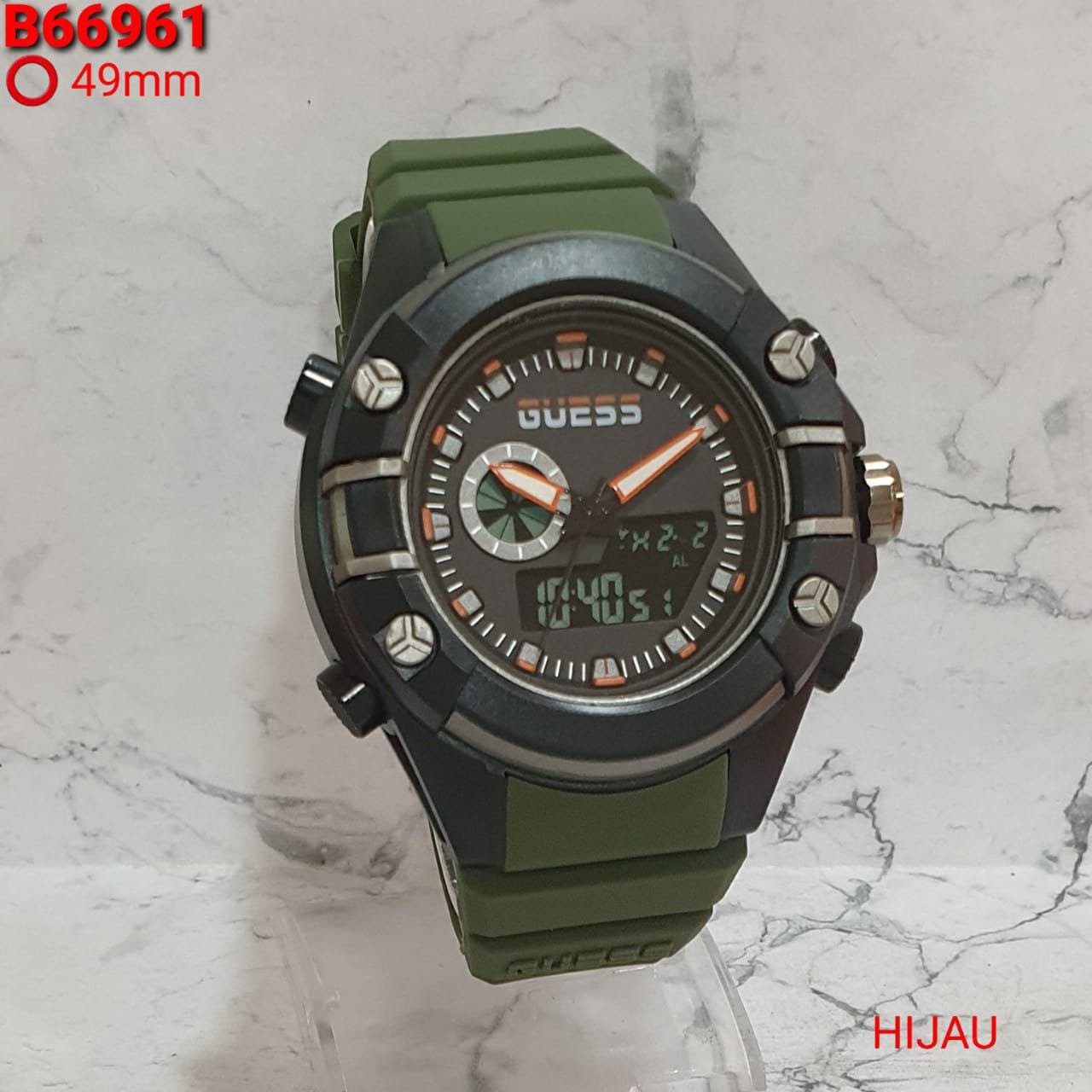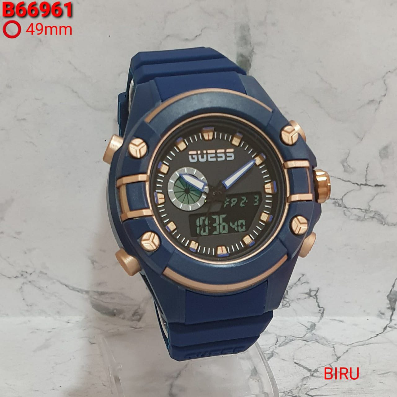 Jam Tangan Pria Dual Time Gues Tali Karet Bonus Box