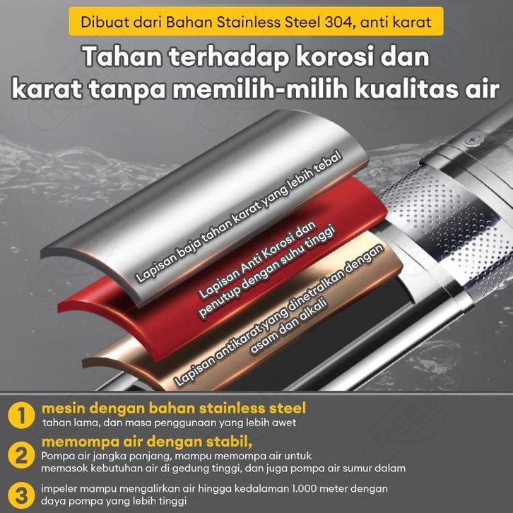 Reaim Pompa Satelit 0.75HP - 550 Watt Pompa Air Sumur Dalam Stainless Steel Submersible Pump Pompa Air Celup Sumur