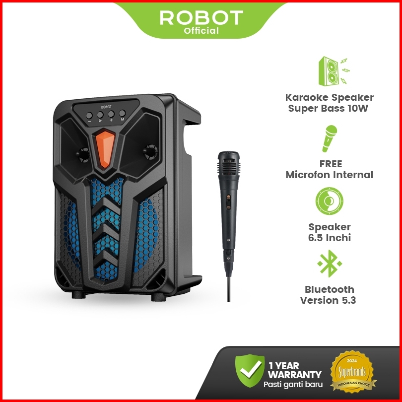 Robot Speaker Karaoke Rb300 Bt 5.3 Speaker Rgb Microphone Set 1200mah Portable Original - Garansi 1 Tahun