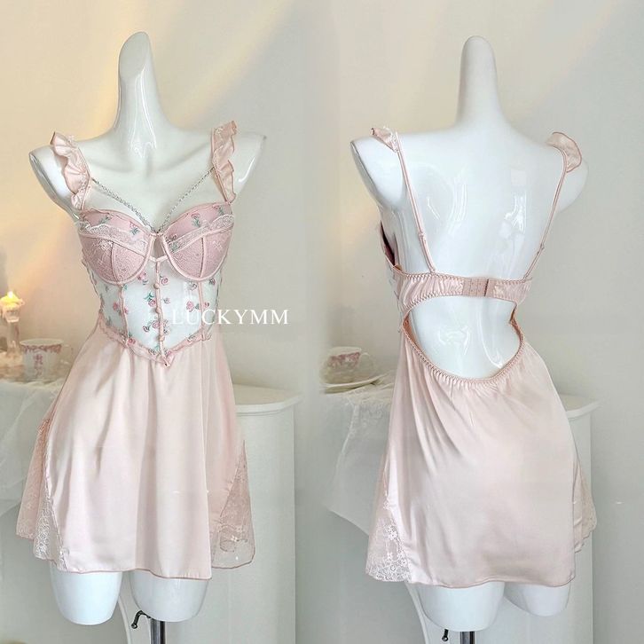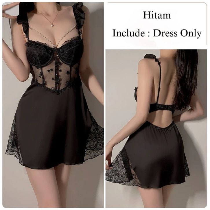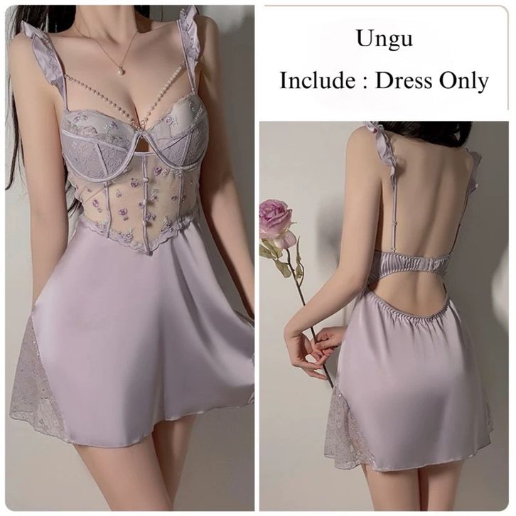 Sexy Lingerie Dress Babydoll Satin Wanita Baju Tidur Wanita Seksi Mini Dress Cup Bra Pushup Sleepwear Baju Dinas 507