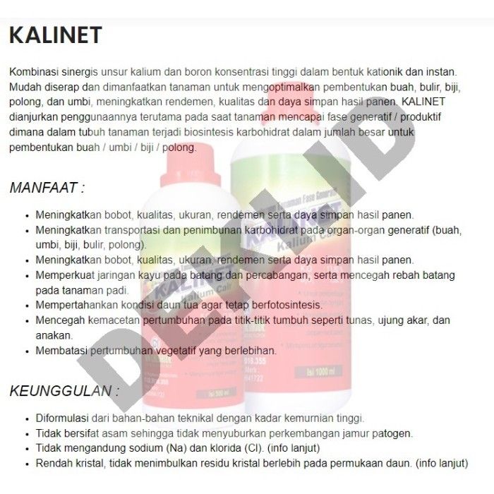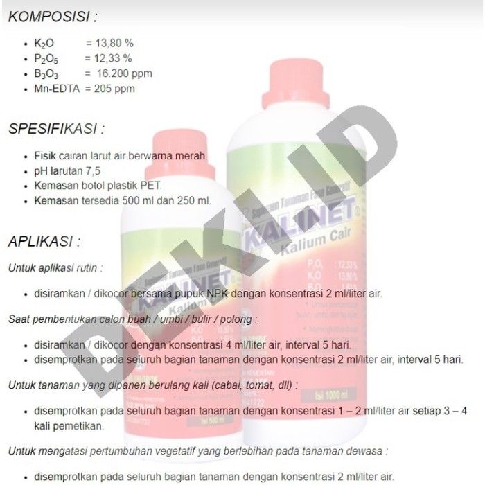 Kalinet 1 L Pupuk Kalium Cair Pembuahan Generatif Tanaman Pemanis Buah