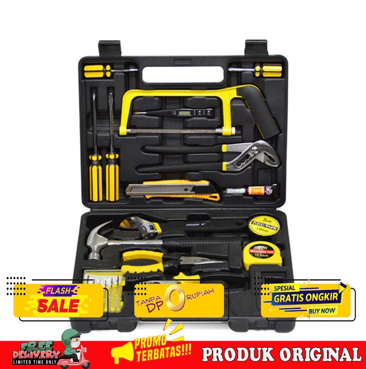 DISKON/SET PERKAKAS TOOLBOX 22 PCS GERGAJI OBENG TANG PERLENGKAPAN RUMAH