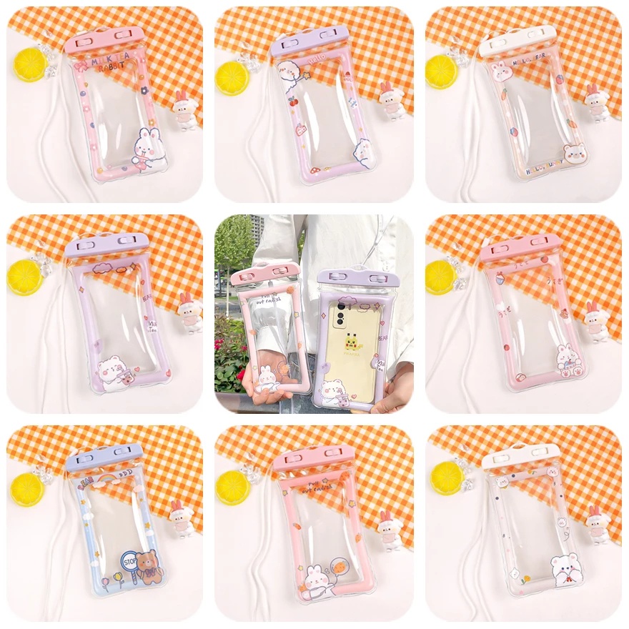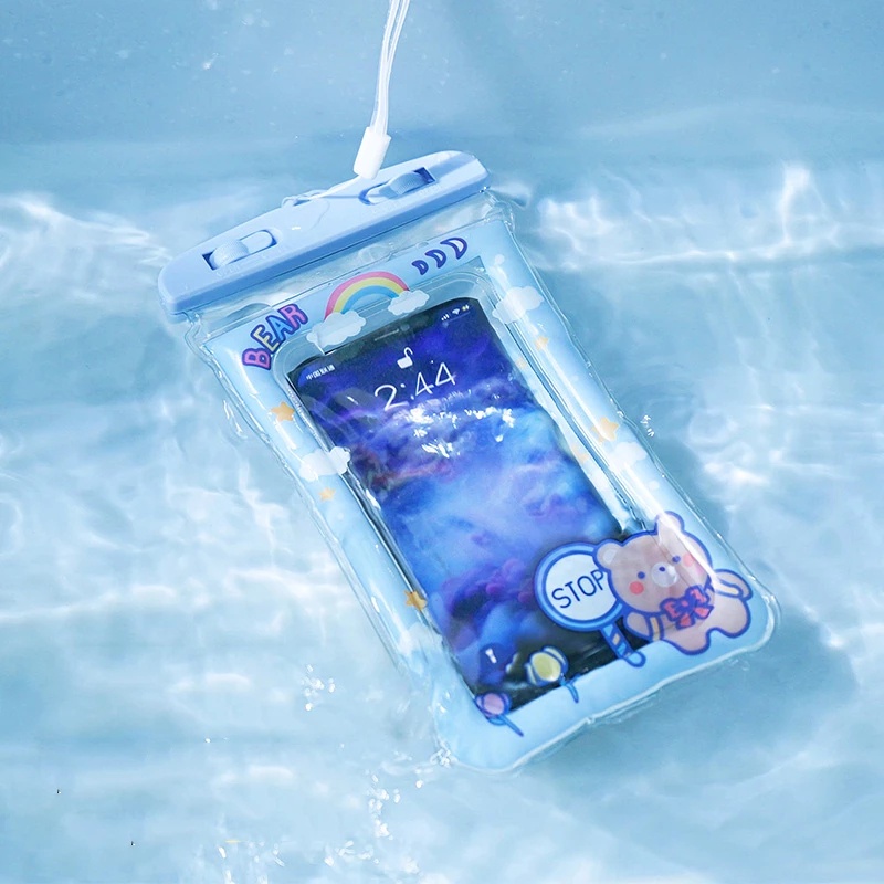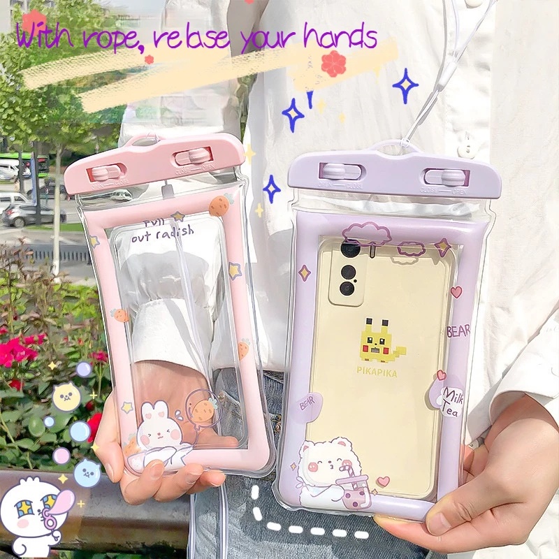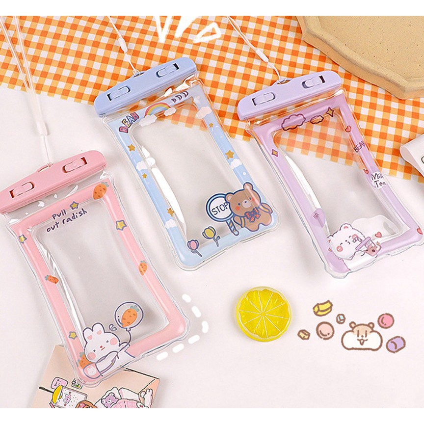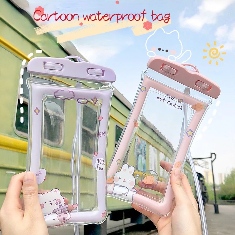 TAS POUCH TRANSPARAN ANTI AIR / HUJAN MOTIF KARTUN HOLDER HANDPHONE
