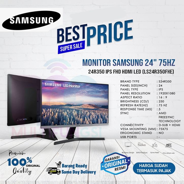 Monitor LED Samsung S24R350 LS24R350 LS24R350FZEXXD 24" IPS 75hz FreeSync