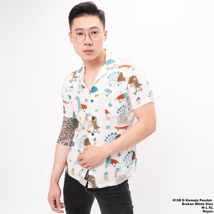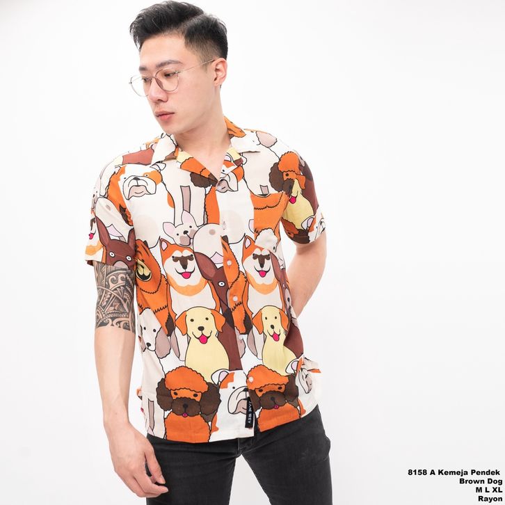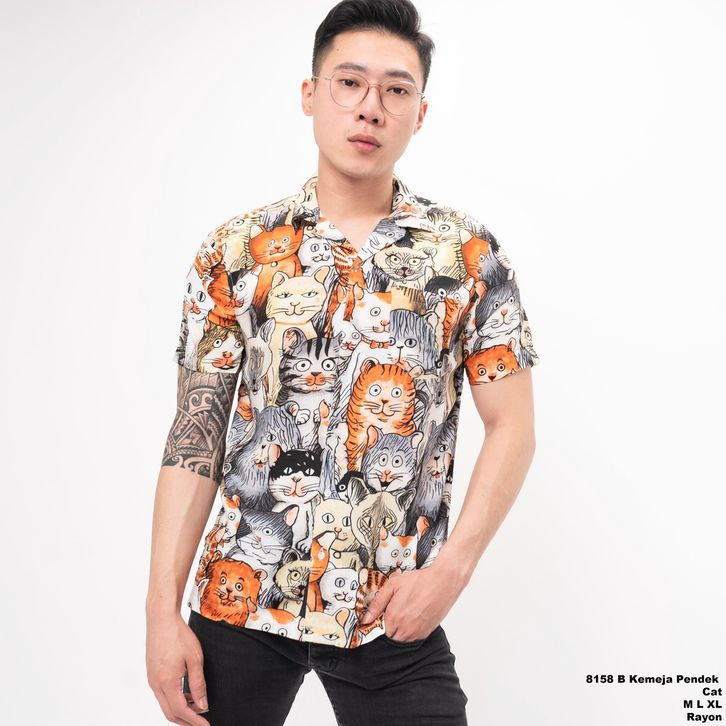 Kemeja Pria Jane Frey Clothing Kemeja Lengan Pendek Pria | Freypv 8158 Kemeja Pendek Hawaiian Santai Dog Cat Cartoon