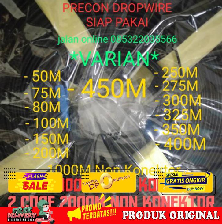 DISKON/DROPCORE 1 CORE / FTTH FIBER OPTIC / KABEL FO / PRECON 100M SIAP PAKAI